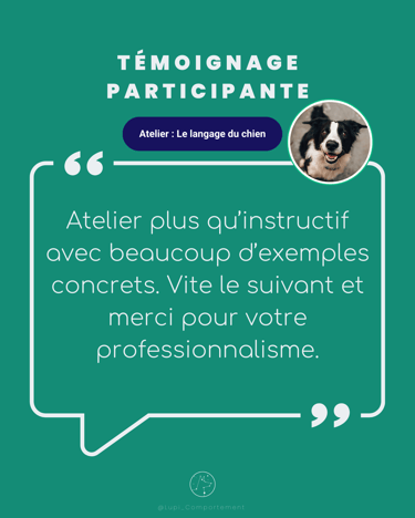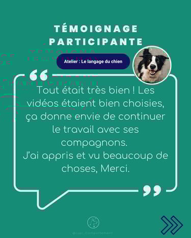 Vous souhaitez renforcer la relation avec votre fidèle compagnon à quatre pattes ? Vous aimeriez décoder les mystères de ses comportements ? Ne cherchez plus ! L'atelier "le langage du chien" est fait pour vous !